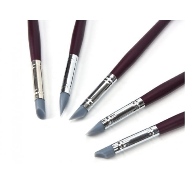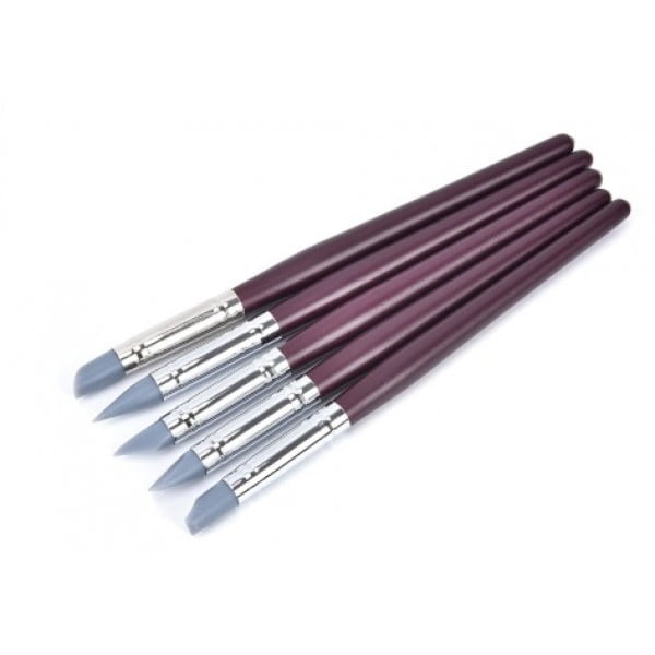 Pincéis de Silicone para Unhas de Gel, Acrigel, Nail Art e Modelagem. Jogo de 5 pincéis profissionais em metal e cabo de madeira com design elegante.